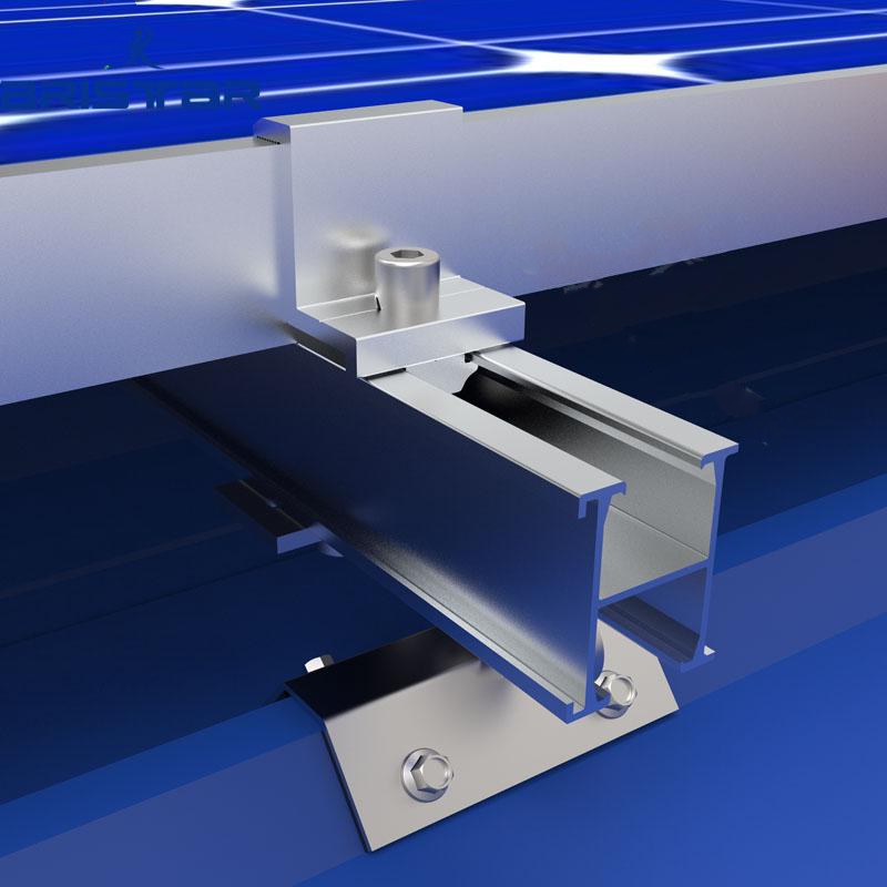 The solution of solar panel mounts for metal roof is designed for trapezoidal tin rooftops, it is suitable for both large areas like factories and warehouse rooftops and small areas like housing rooftops. As connecter between rooftop and rails, we use an adjustable metal roof mounting clamp, with this clamp, the Solar Mounting Structure will fit to tin roofs of different trapezoid size. Also, we offer different style of top part for the adjustable metal roof mounting clamp to make it fit to universal roof rail and H type roof rail.